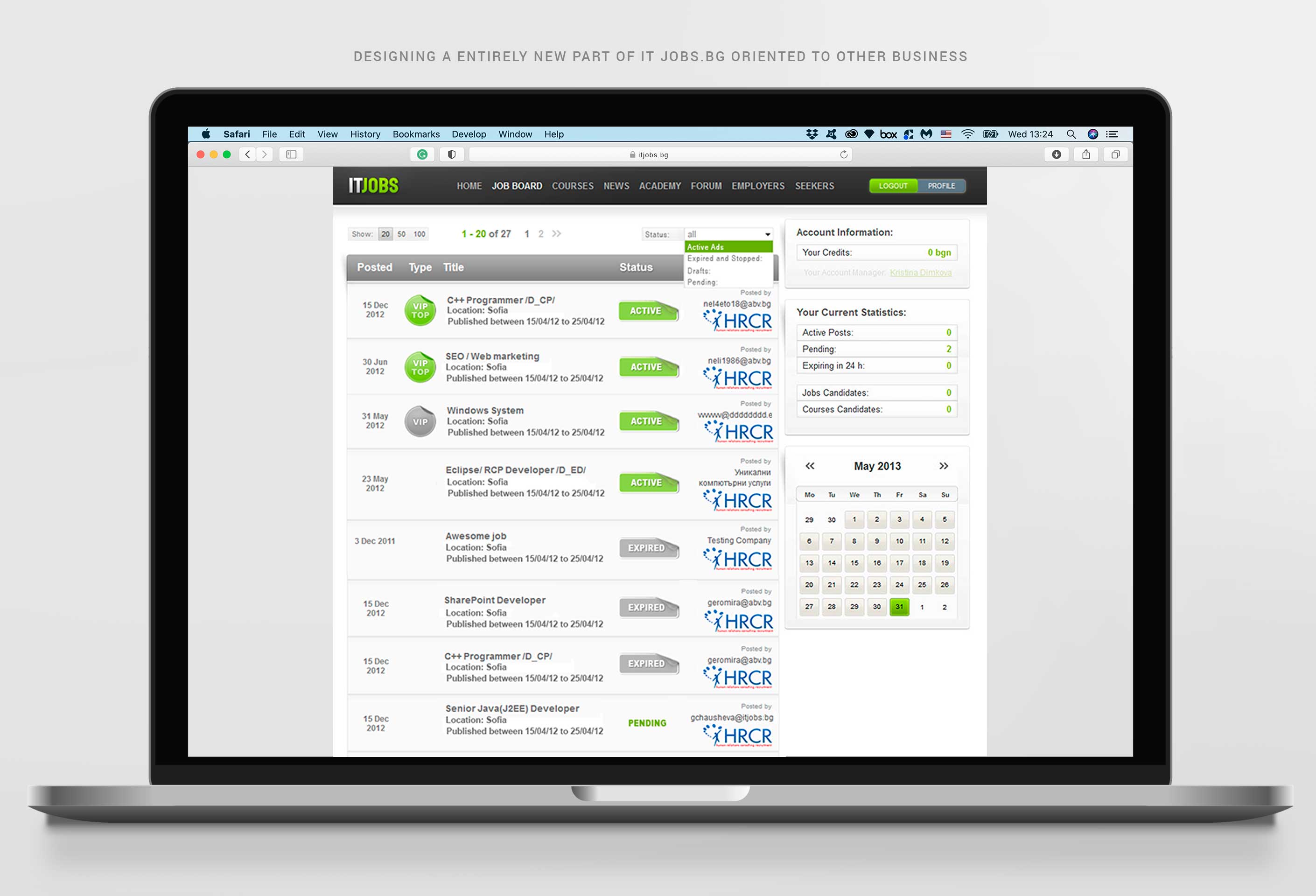My work for itjobs.bg was something special to me, that combined design and development in one. I worked in a small team for which each member was important. My role was to modernize the WordPress theme of the site and build new modules for it.